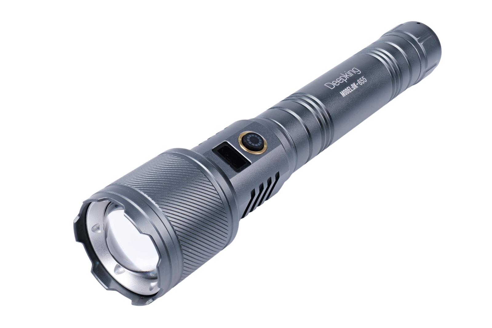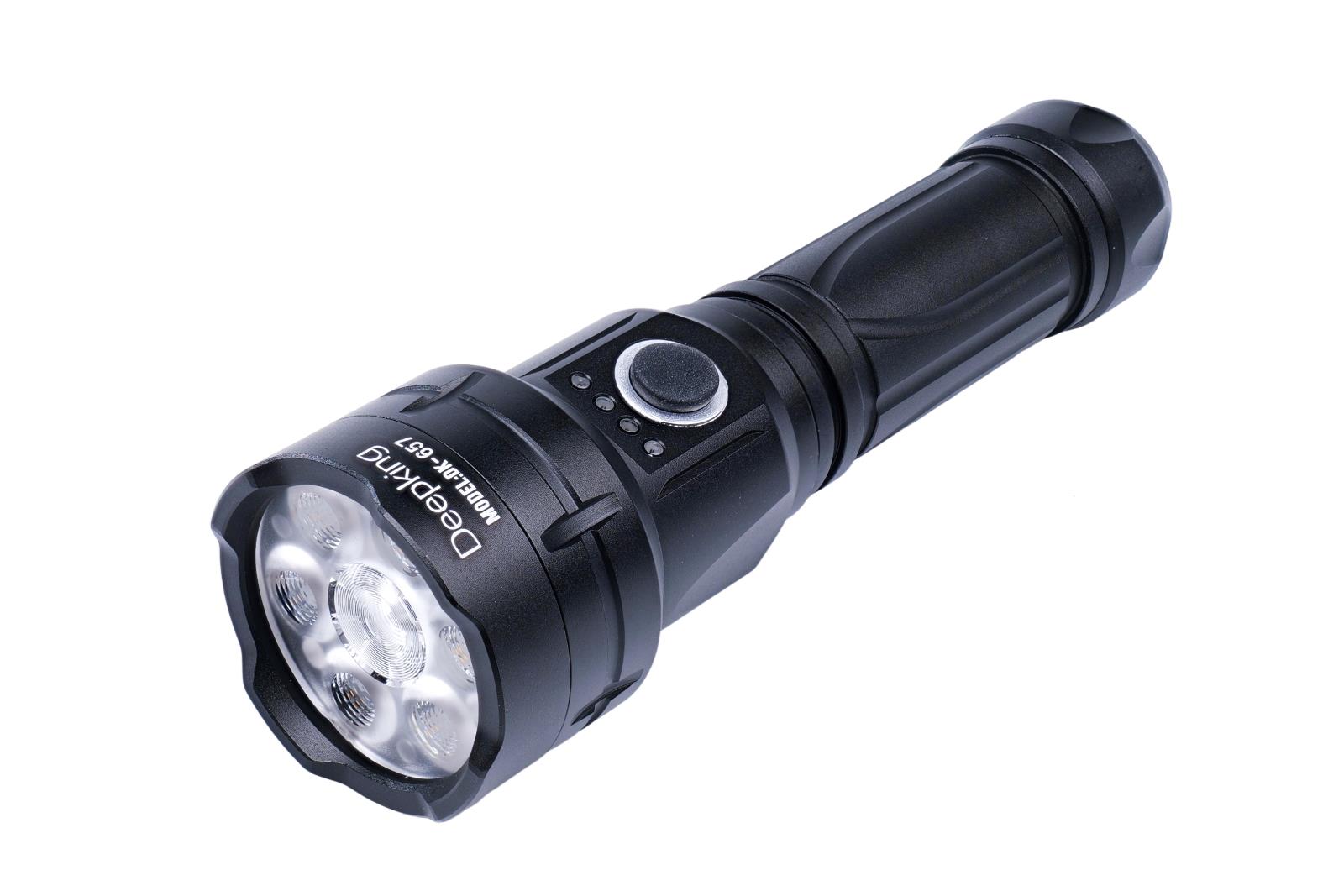 Item No. : DK-632 Series: Flashlight Capacity (mah): 6500 Light power: TG White laser Ctn/pcs: 60 CTN Size: 48*45.5*34.5CM Color: Black